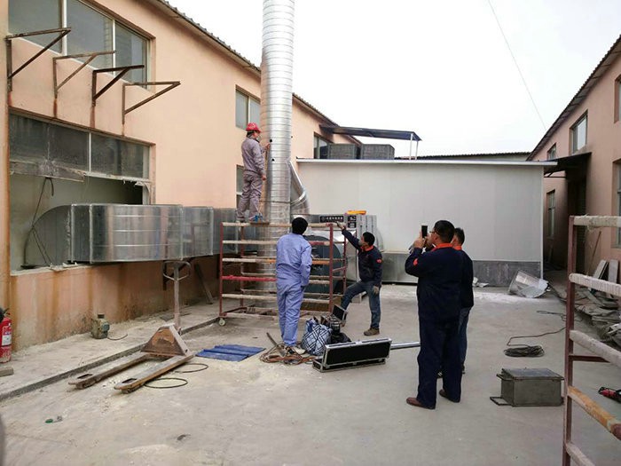 2.工藝流程 待處理的大風量有機混合廢氣經風機排出,再經過轉輪排風機動力進入預處理過濾裝置去除廢氣中的粉塵及雜質部分,經過濾後“相對純淨的有機廢氣”進入吸附裝置進行吸附淨化處理,有機物質被吸附劑獨特的作用力截留在其內部,潔淨氣體排出,經過一段時間吸附後,吸附劑達到飽和狀態,進入冷卻和高溫脫附區域。 吸附劑脫附出來的高濃度廢氣直接進入RTO蓄熱式焚燒爐進行焚燒淨化處理,廢氣焚燒後的氧化室高溫氣體與脫附廢氣通過熱交換器進行熱交換,脫附廢氣換熱後進入脫附區進行脫附,吸附劑的有機物受到熱空氣加熱後從吸附劑中揮發出來,此時脫附出來的廢氣濃度高、風量小、溫度高。有機廢氣直接進入RTO焚燒爐氧化後釋放出大量能量,利用有機物燃燒釋放出的熱量維持自燃。 3.處理效果 主要有機廢氣種類為苯、甲苯、乙酸乙酯、乙酸丁酯、環己酮等。一般適用於有機物濃度1500mg/m3以下的廢氣。廢氣中VOCs去除率可達90%以上。